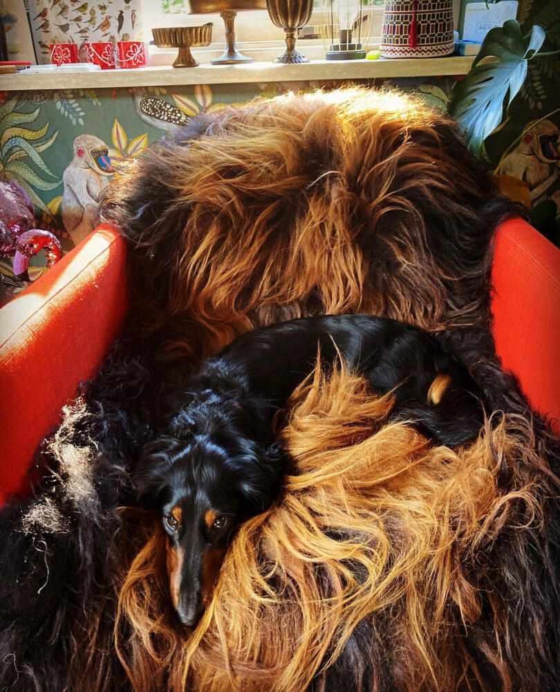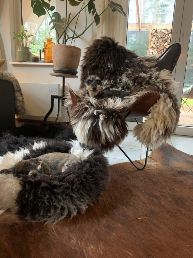 eren laten zich niet vertellen wat ze wel of niet fijn moeten vinden. Zo verkochten wij in het verleden chemisch gelooide vachten. Deze zijn ook mooi en niets mis mee, maar onze dieren hadden altijd sterk de voorkeur voor de ecologisch gelooide vachten. (Deze worden gelooid op natuurlijke wijze met o.a. water zout en aluin zonder de toepassing van chemische producten). Het voordeel van de natuurlijk gelooide vachten is dat ze veel langer mooi blijven door de lanoline (vetlaag) die erin zit. Bestand tegen ongelukjes en hebben helende werking op mens en dier.