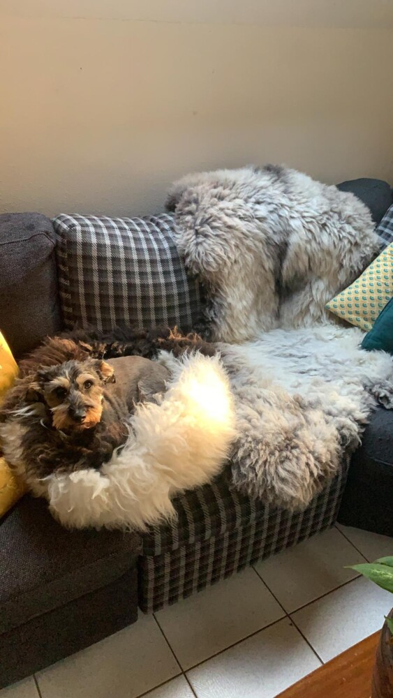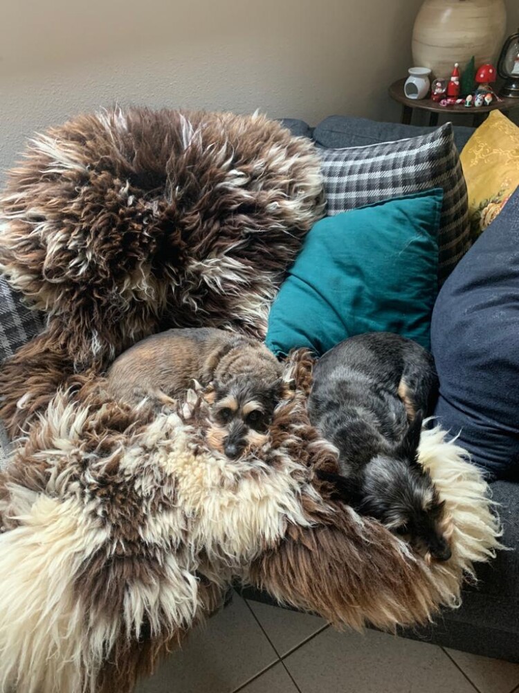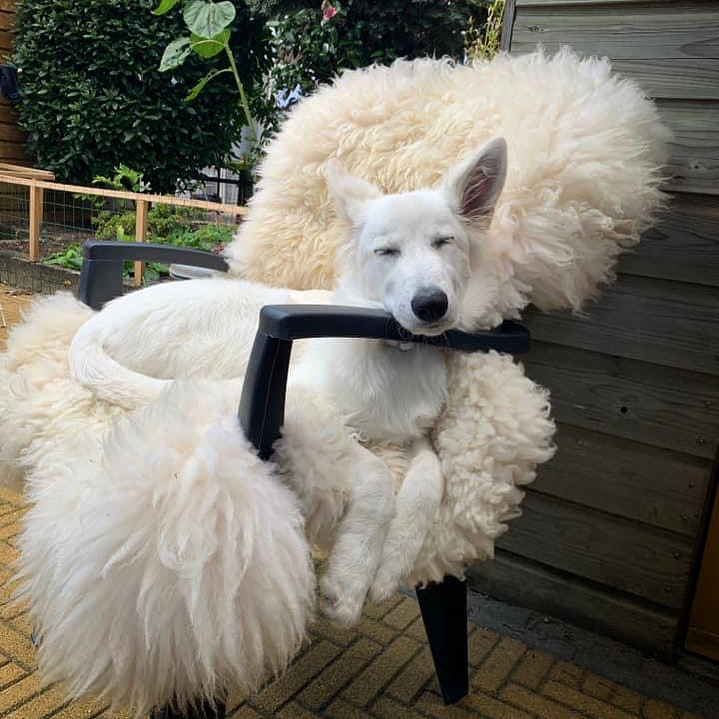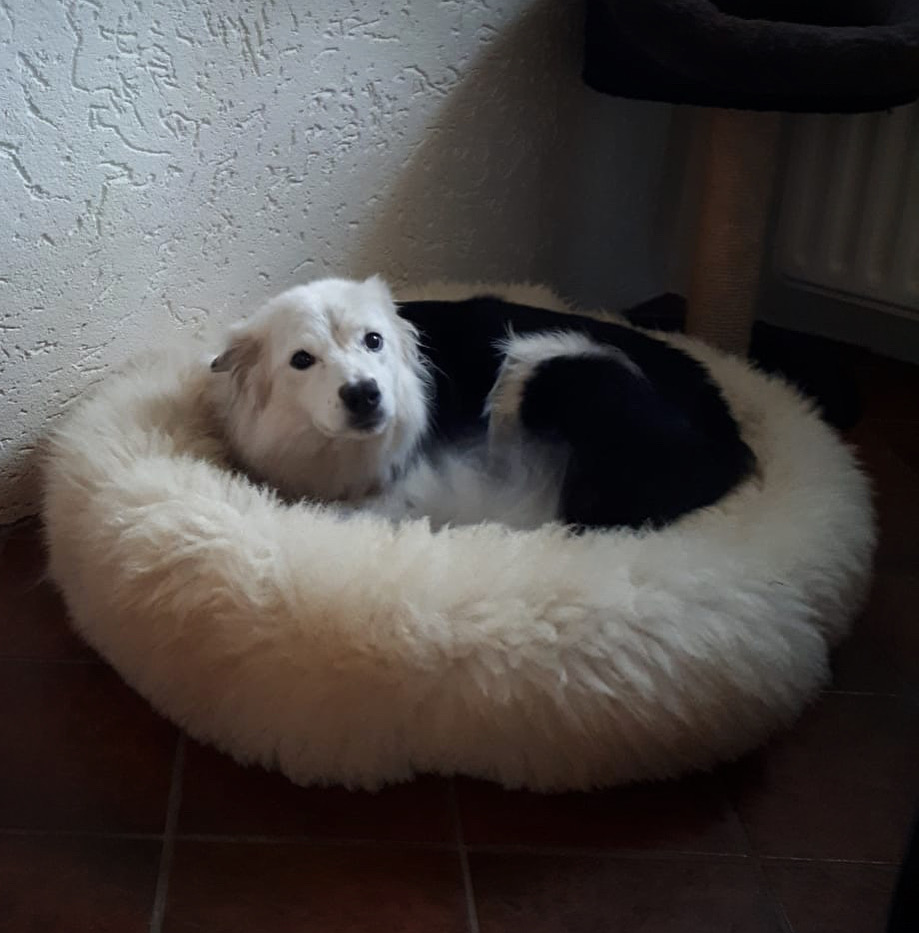 Daarnaast heeft een schapenvacht ook andere voordelen. Denk net als bij de mens aan reuma, artrose en doorliggen bij oudere honden. Vaak hebben ze op oudere leeftijd last bij opstaan door versleten heupen. Dit kan je voor een groot deel wegnemen door ze een vacht te geven. Wij en onze klanten hebben hele goede ervaringen daarmee!! Het heeft een helende werking door de natuurlijke lanoline laag. Zo verdwenen de open p[lekken bij onze oude hond als sneeuw voor de zon en groeide het haar er zelfs na twee weken al weer op. daarvoor zijn we zeker twee jaar aan het leren geweest met zalfjes van de dierenarts wat geen effect had.