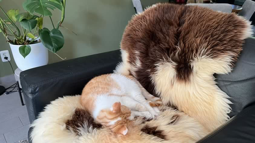 Krijg je een puppy of kitten, dan is een schapenvacht een mooie aanschaf. Ze worden er rustig, geeft ze geborgenheid door de geur en doordat het meteen de lichaamstemperatuur aanneemt. de geborgenheid van je moeder en je broertjes en zusjes ben je kwijt. Een enorme overgang is dit waardoor ze vaak zielig zijn en in de nachten de hele boel bij elkaar kunnen janken. Je kan dit ondersteunen door ze op een schapenvacht te laten slapen. het mooie van een schapenvacht is dat ze de geur van een hond niet aannemen. het gaat dus niet naar hond stinkenen je hoef het niet iedere week te wassen net als een mand of kussen waar ze normaal op liggen. de meeste weten dat dit (helemaal bij nat weer) enorm kan gaan stinken. Zelfs zo erg dat je hele huis ernaar ruikt.