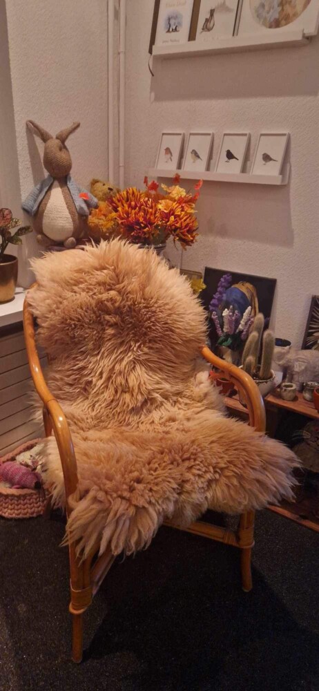 De caramelkleurige schapenvachten zijn afkomstig van een Duits schapenras. Ze zijn (de meeste) heelijk zacht en variëren van 100cm tot soms wel 150cm. Ze zijn er met zowel lange haren als kort geschoren.